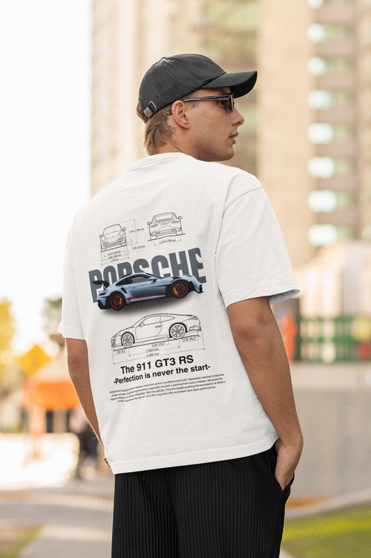PORSCHE GT3-RS 911 Both Side Printed Black Unisex Oversized T-shirt
