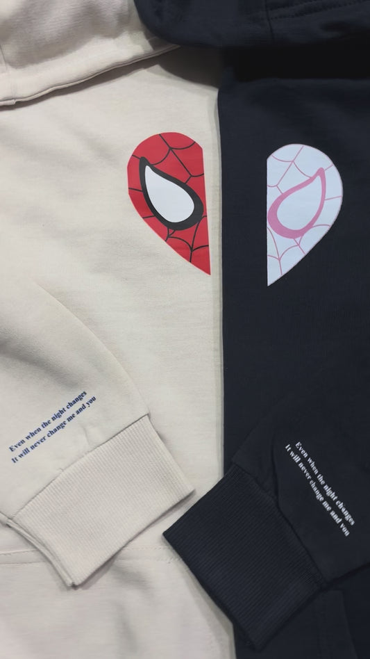2 Pack: Spider Half Heart Couple Matching Hoodies
