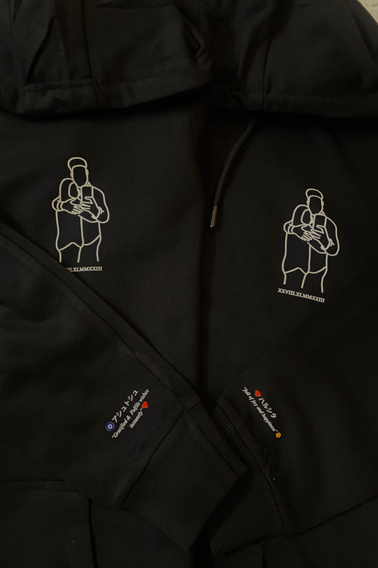 2 Pack : AMOR Matching Black Hoodies (Both Side Printed)