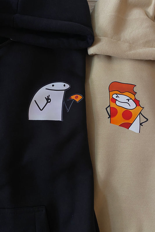 Pack of 2: Eating Pizza Slice Doodle Matching Printed Hoodies with Printed sleeves