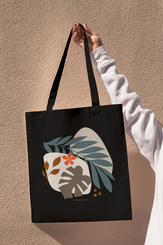 Black/White Aesthetic Floral Tote Bag with Zipper