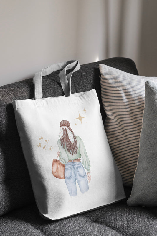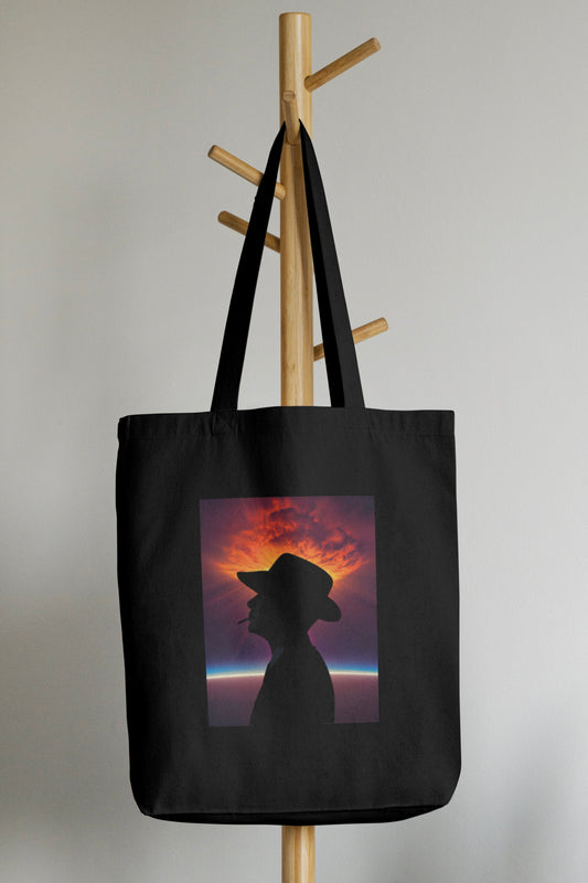 Black/White Aesthetic Girl Tote Bag with Zipper