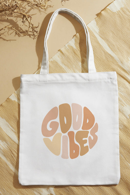 Black/White Good Vibes Tote Bag with Zipper