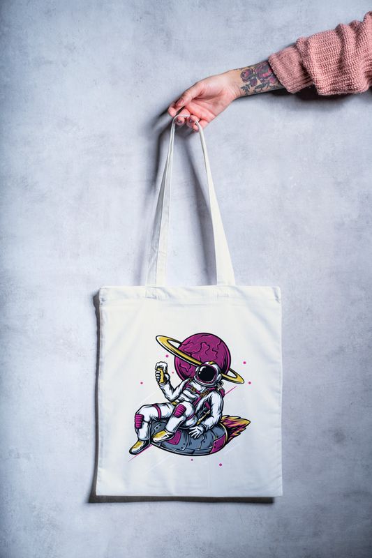 Black/White Astronaut Tote Bag with Zipper