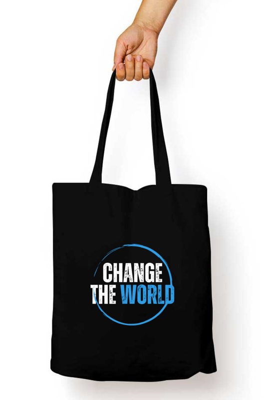 Black Tote Bag with Zipper ( Change the World )