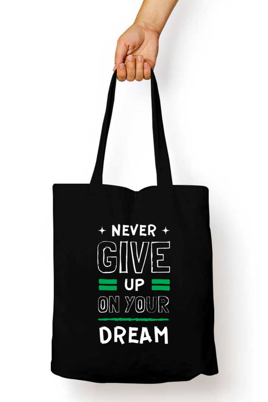 Black Tote Bag with Zipper ( Never Give Up On Your Dream )