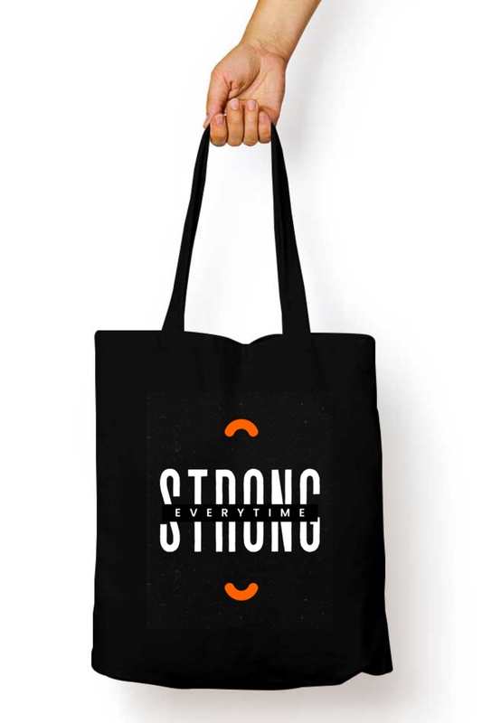 Black Tote Bag with Zipper ( Strong Everytime )