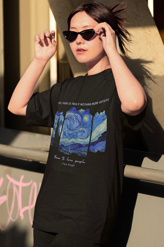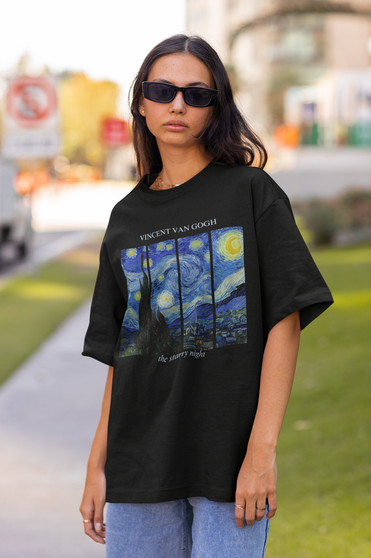 Vincent Van Gogh (The Starry Night) Graphic Printed Unisex Black Oversized T Shirt