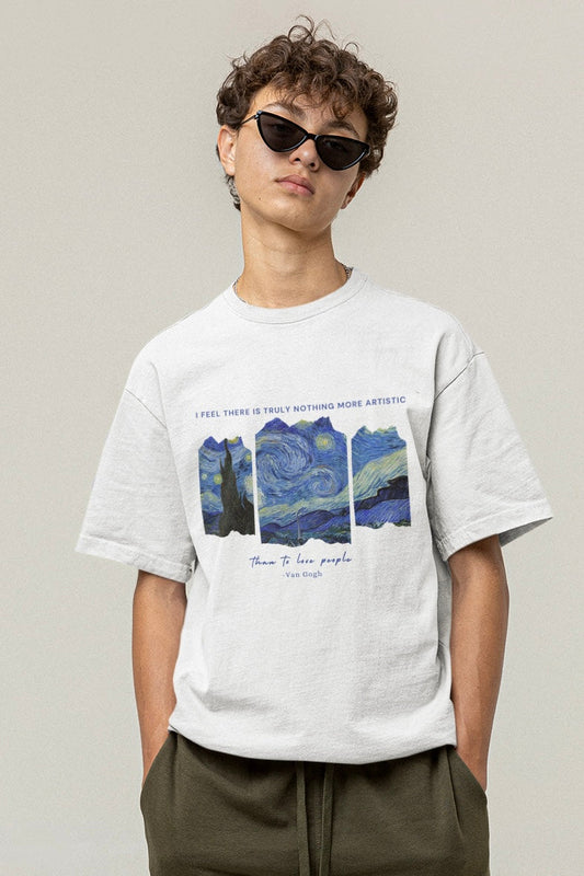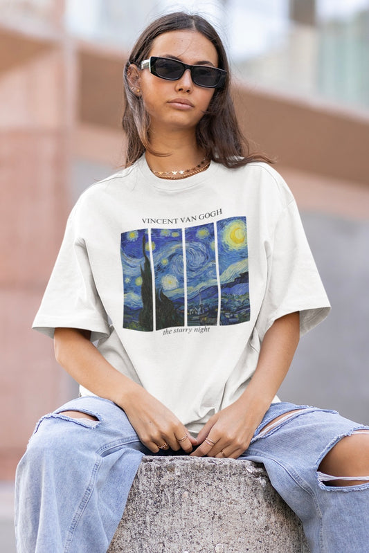 Vincent Van Gogh (The Starry Night) Graphic Printed Unisex White Oversized T Shirt