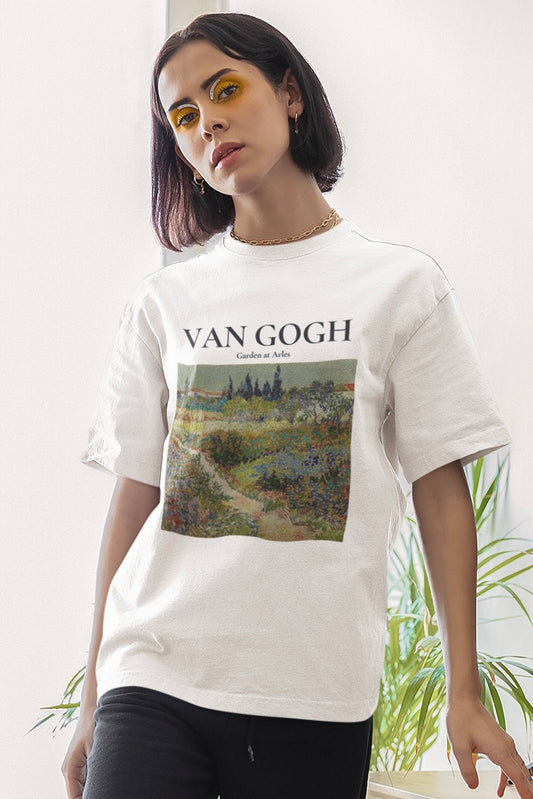Garden at Arles (Vincent Van Gogh) Graphic Printed Unisex White Oversized T Shirt