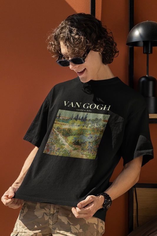 Garden at Arles (Vincent Van Gogh) Graphic Printed Unisex Black Oversized T Shirt