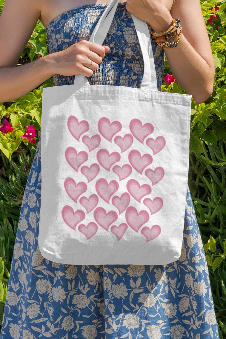 Aesthetic Concentric Pink Hearts White Tote Bag with Zipper